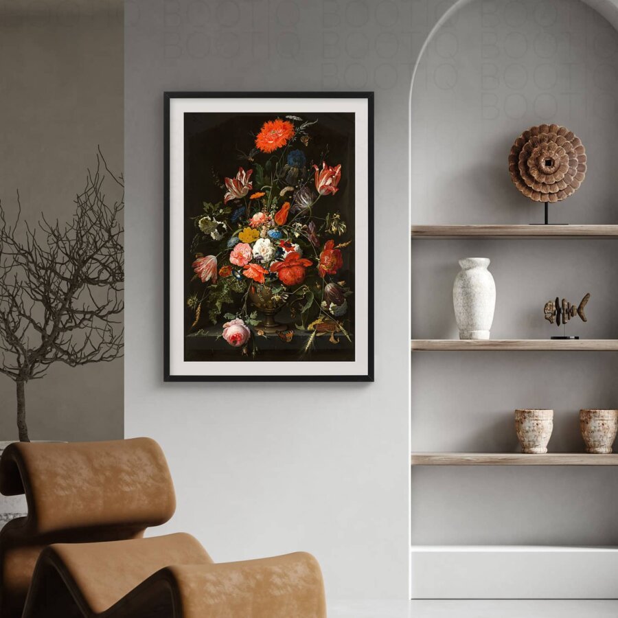 Mignon, un pictor de natura moarta, a venit de la Frankfurt și a locuit în Utrecht. Picturile sale luxoase de flori sunt foarte asemănătoare cu cele ale maestrului său Jan Davidsz de Heem, dar sunt puțin mai puternice ca formă și culoare. Pictura provine din colecția familiei Orange-Nassau care au fost spânzurați în Castelul Oranienstein din Diez, Germania, în secolul al XVIII-lea.