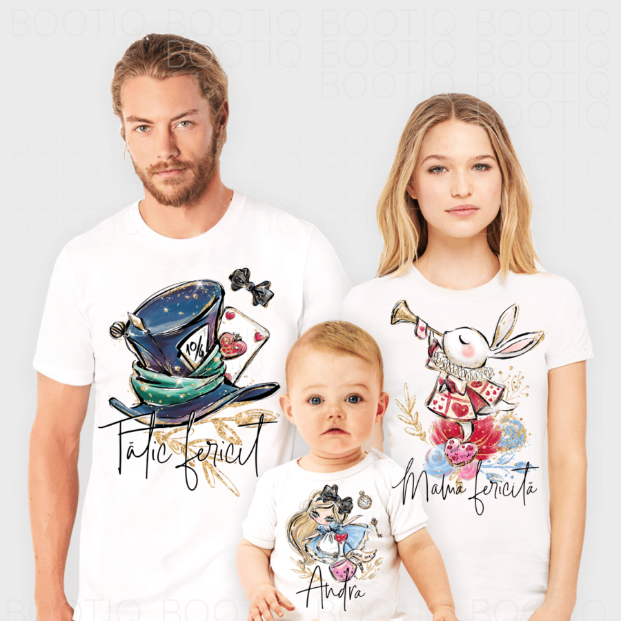 In campul de personalizare te rugam sa ne lasi ce text doresti sa apara pe tricouri, in imaginea de pe site sunt cu titlu de prezentare, poti alege ce text doresti.
