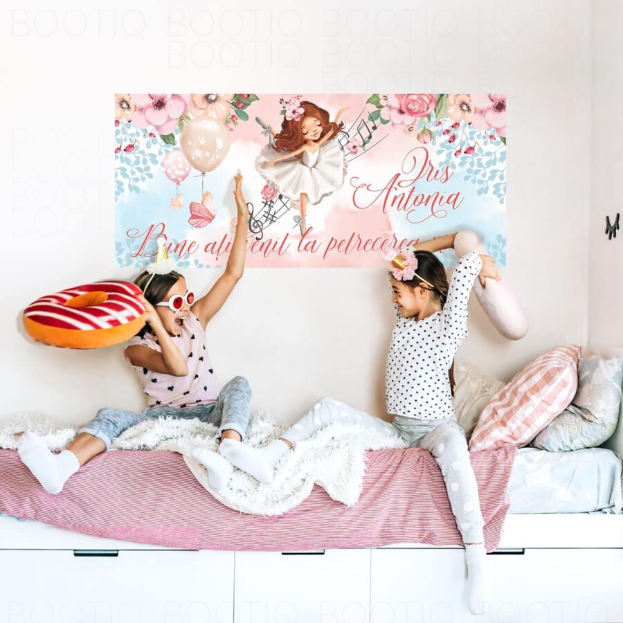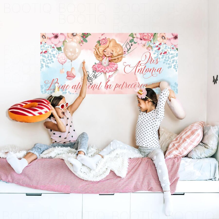 Imprimat pe o panza speciala in format orizontal – semnul de bunvenit se lipeste pe perete pentru a da o nota tematica, in acelasi stil, incaperi in care organizezi petrecerea.