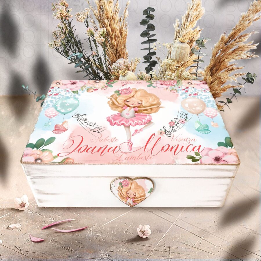 Cutie lemn aniversara cu accesorii – Pink Ballerina Watercolor