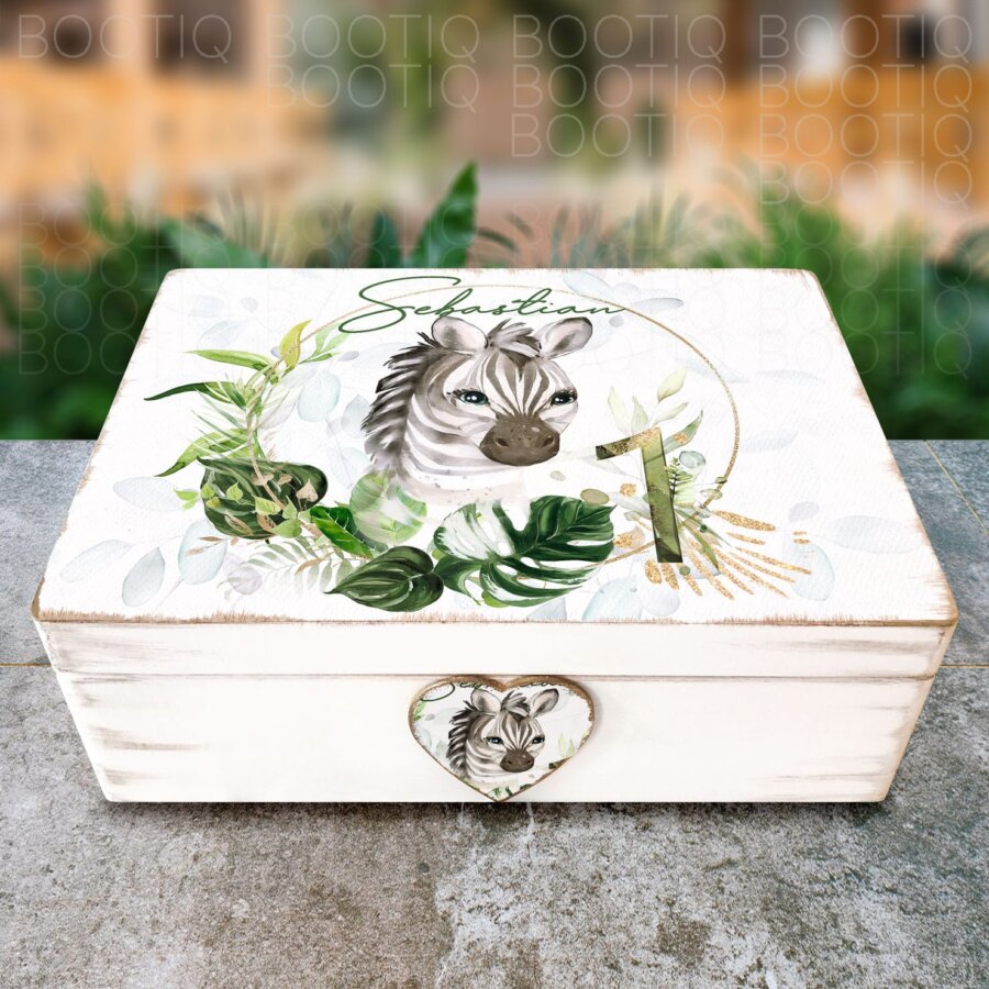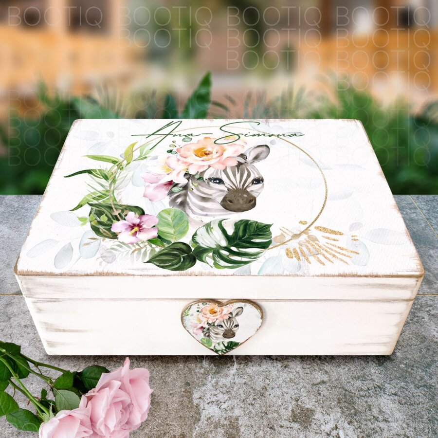 Cutie din Lemn Savanna Zebra – Cutie personalizata din lemn pentru amintiri, botez sau aniversare