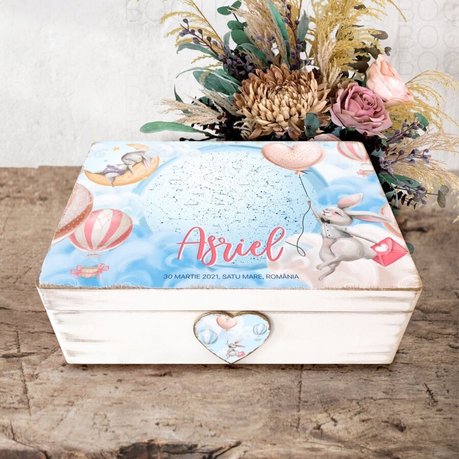 The Magic Sky Bunny – Cutie din Lemn Personalizata