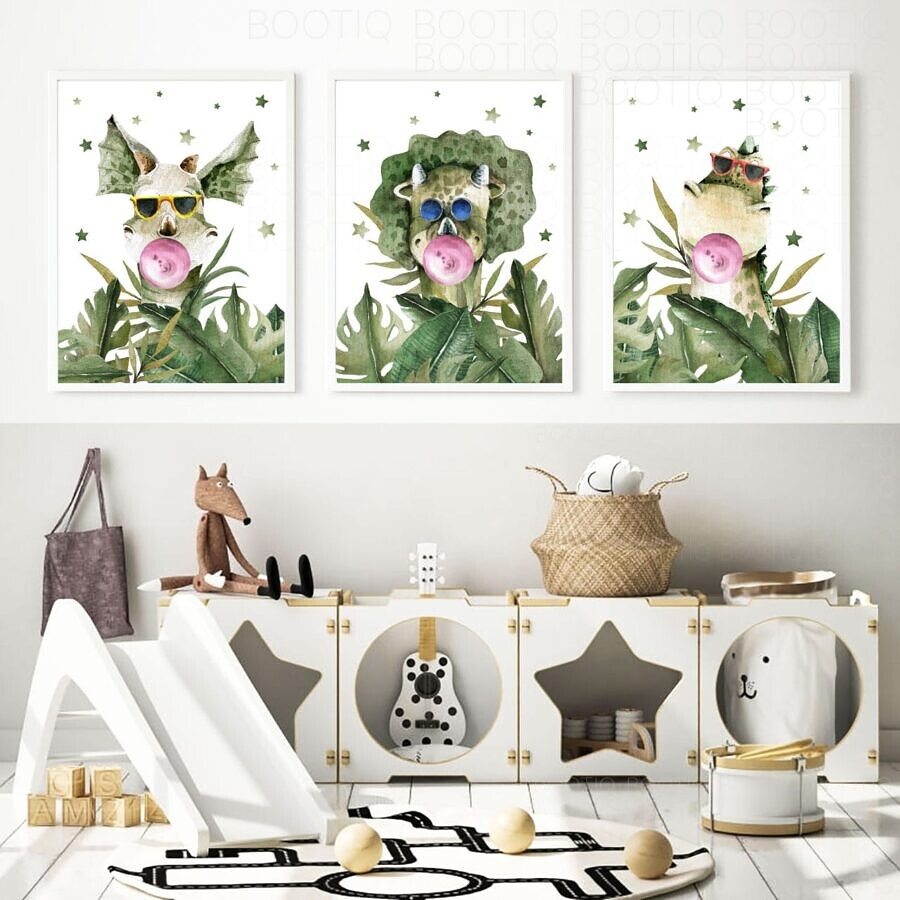 Setul de tablouri Dino Party pentru camera copiilor ofera o pata de culoare si ii incurajeaza imaginatia prichindelului tau. Acest set modern de personaje colorate va aduce un plus de culoare si energie pozitiva pentru orice gradinita sau dormitor de copii.