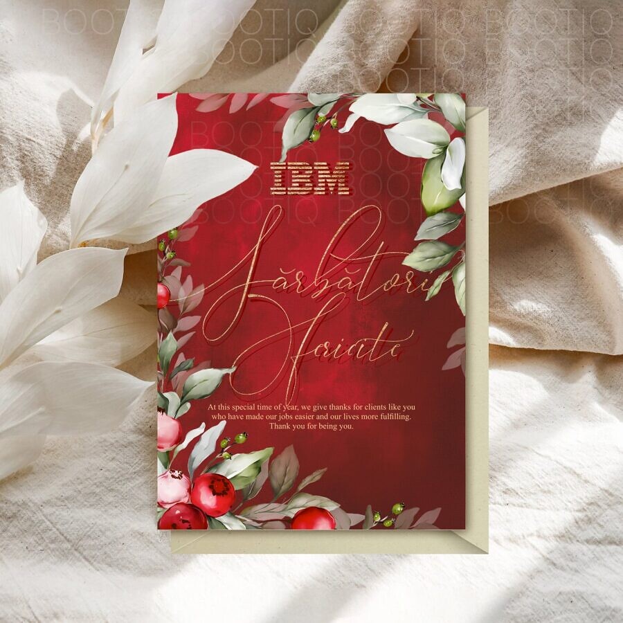Aduceți bucurie celor dragi și dăruindu-le alaturi de cadouri si o felicitare frumos ilustrată de Crăciun! Felicitarea este realizata în întregime din hârtie/carton de 300g și include un plic vintage. Felicitarea are un spațiu liber pe spate unde puteti scrie propriile urari. Designul prezentat în fotografie este o reproducere digitală a unei ilustrații pictate manual, folosind acuarelă. Ilustrația prezintă modele florale si fundal watercolor rosu și inscripția Sărbători Fericite.