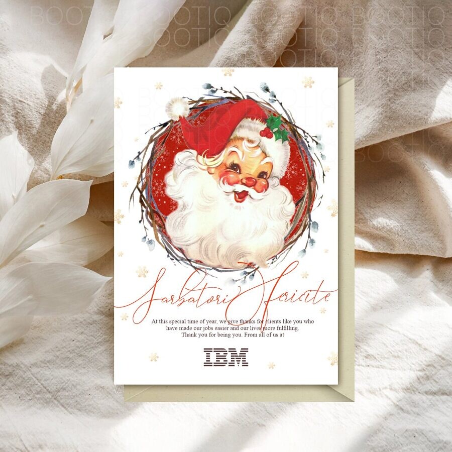 Aduceți bucurie celor dragi și dăruindu-le alaturi de cadouri si o felicitare frumos ilustrată de Crăciun! Felicitarea este realizata în întregime din hârtie/carton de 300g și include un plic personalizat vintage. Felicitarea are un spațiu liber pe spate unde puteti scrie propriile urari. Designul prezentat în fotografie este o reproducere digitală a unei ilustrații pictate manual, folosind acuarelă. Ilustrația il prezintă pe Mos Craciun și inscripția Sărbători Fericite.