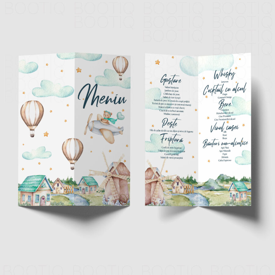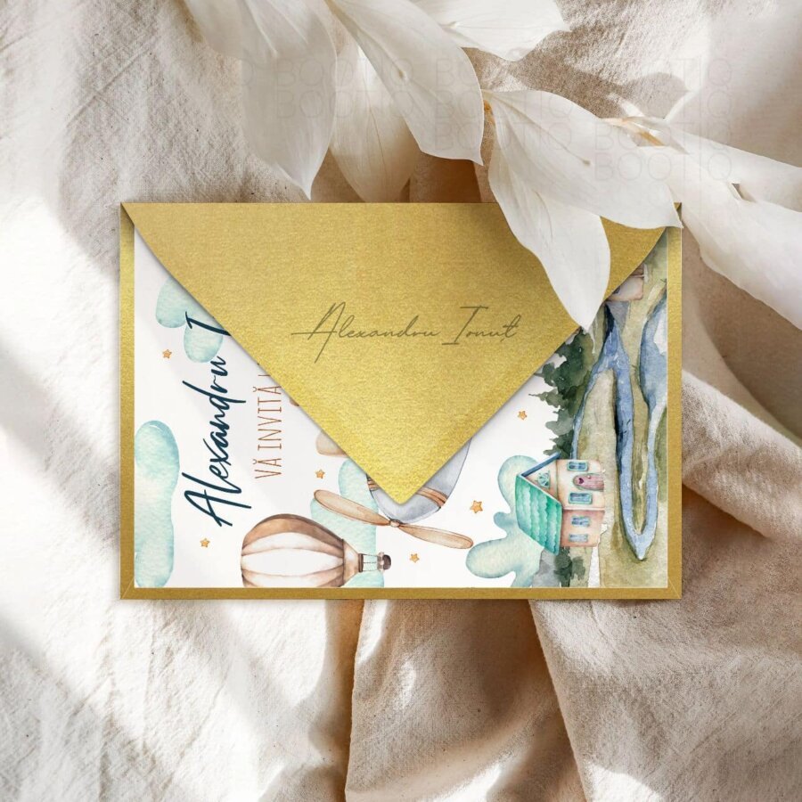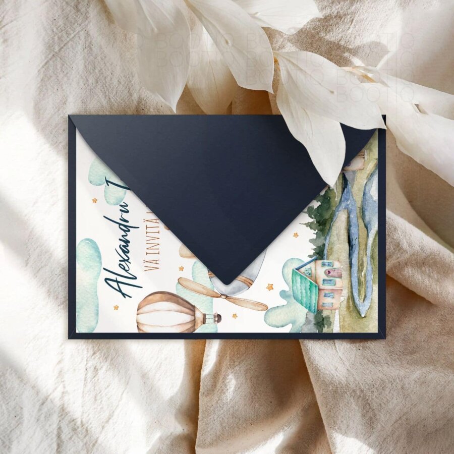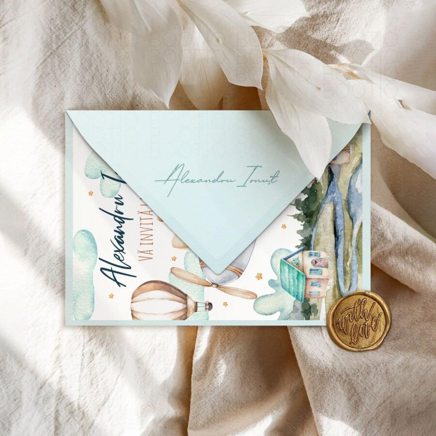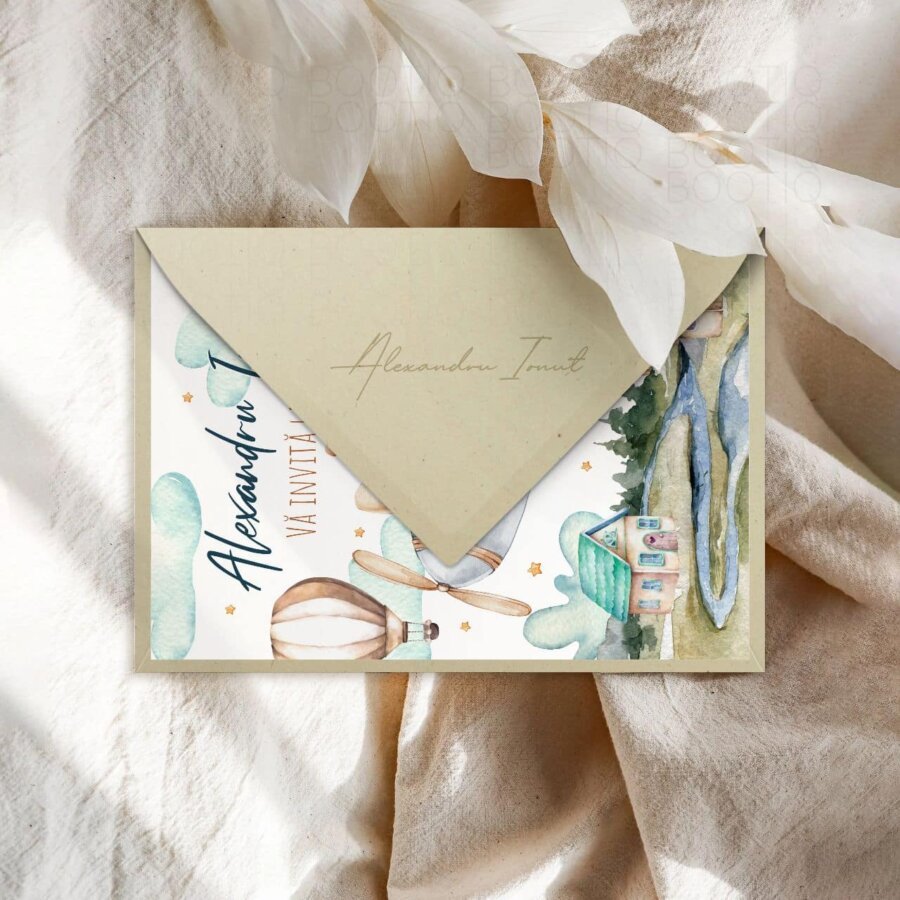 Ti-ai privit prichindelul in ochi din primele sale clipe si ai stiut din acel moment ca intreaga ta viata o vei da in schimbul unor avalanse de zambete pe fata copilului tau. Celebreaza aniversarea sau botezul celui mic in cel mai jucaus si colorat mod posibil. Invitatia pentru botez “Aviator Lovely Bear” a fost conceputa special de designerii nostri pentru ca tu sa retraiesti bucuria copilariei si pentru a intipari pe fetele celor apropiati un zambet incarcat de spiritul ludic al celei mai frumoase perioade din viata fiecaruia: copilaria.Pentru a comanda acest produs trebuie sa achitati integral online sau prin transfer bancar. Dupa confirmarea designului trebuie sa achitati prin transfer bancar sau la livrare.