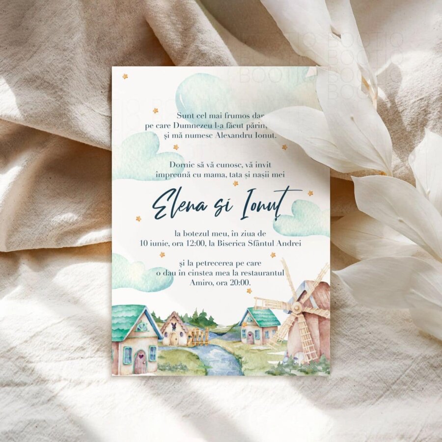 Designul invitatiei e tare dragalas si toti cei care au primit-o au spus ca e foarte frumoasa. Stilizarea textului a fost rapida si rezultatul final se poate primi chiar si in aceeasi zi. Noi am dat comanda in weekend si luni aveam deja invitatiile gata de trimis. Multumim!