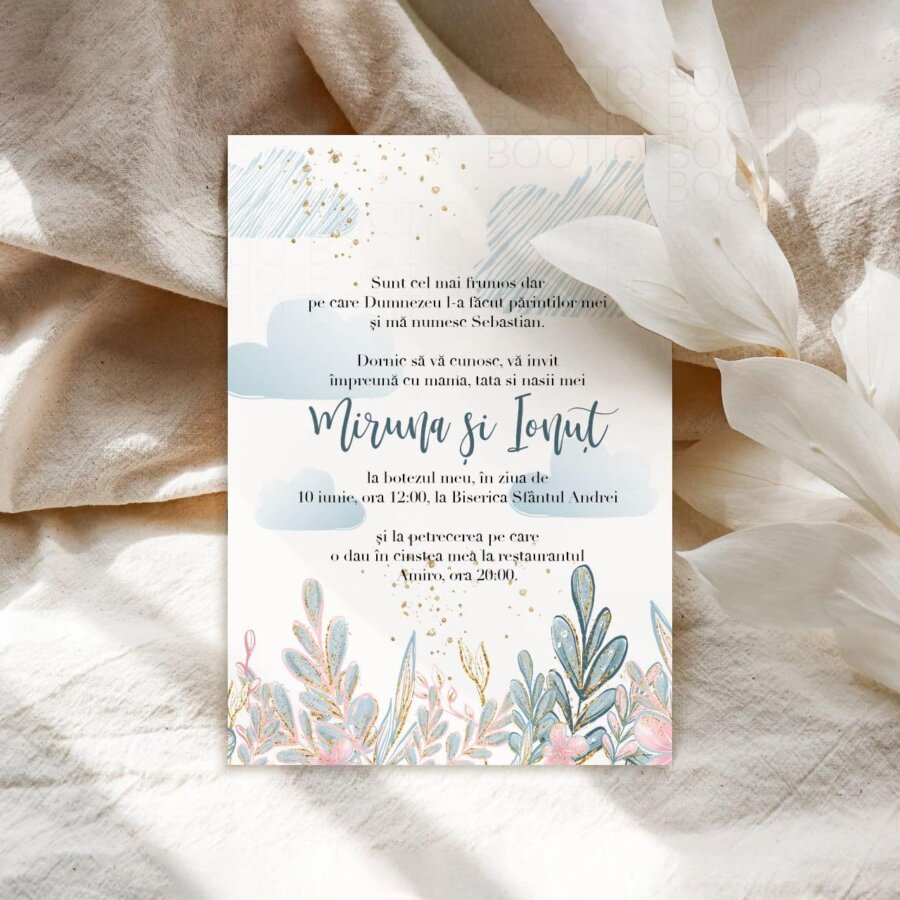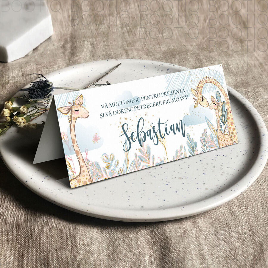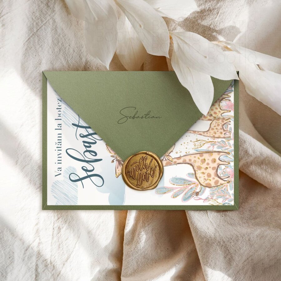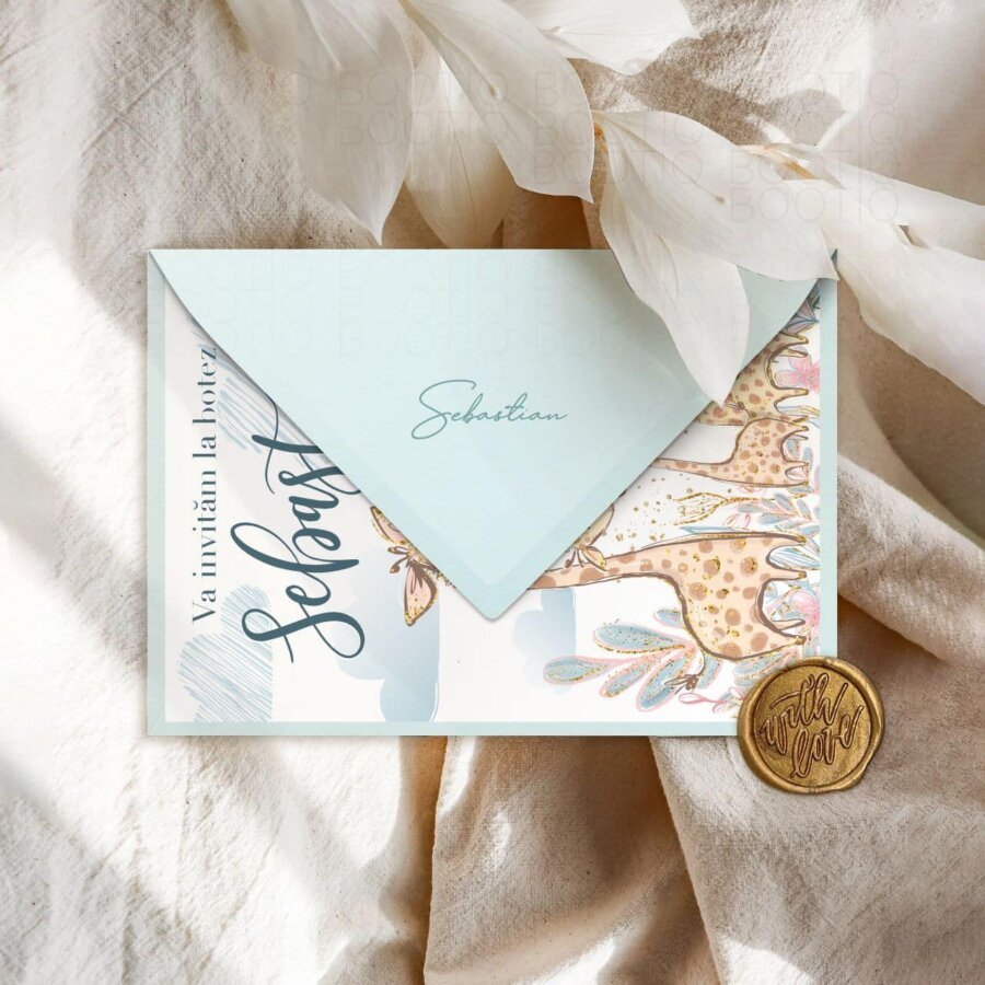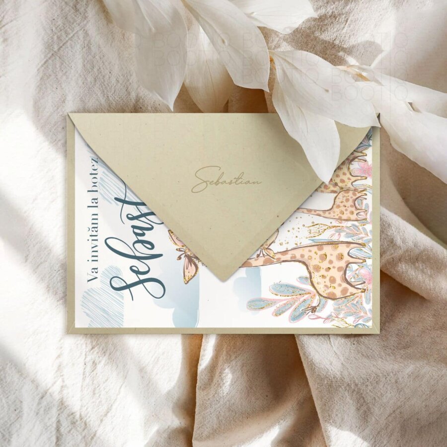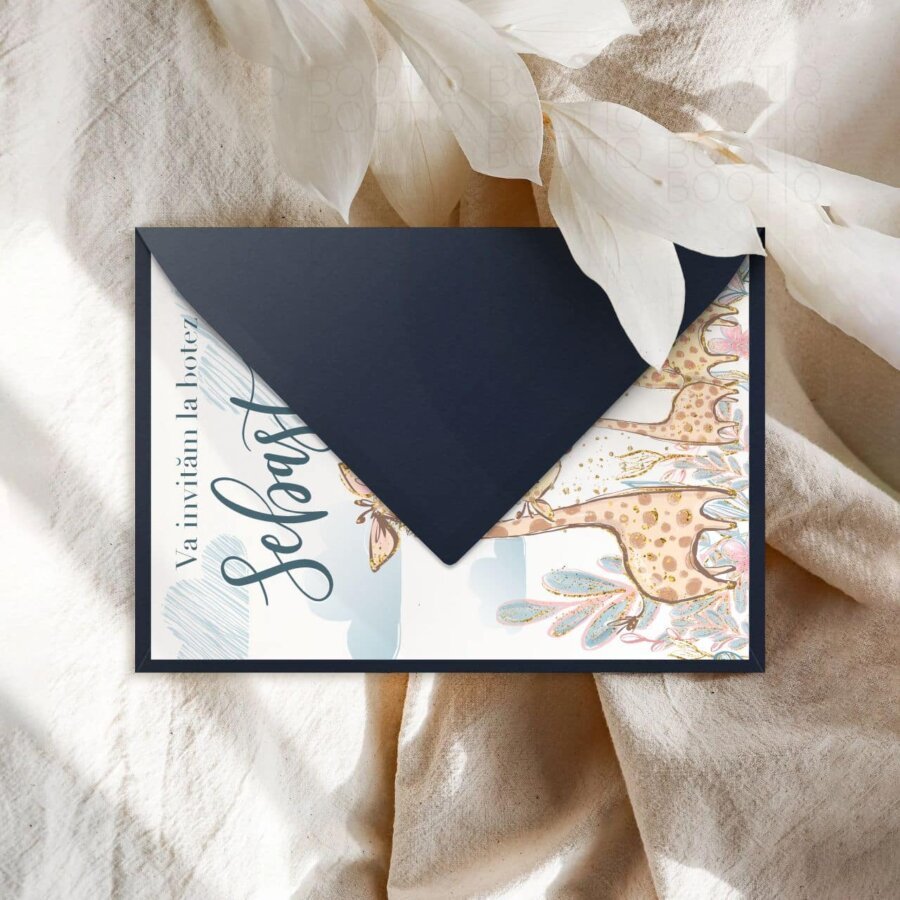 Ti-ai privit prichindelul in ochi din primele sale clipe si ai stiut din acel moment ca intreaga ta viata o vei da in schimbul unor avalanse de zambete pe fata copilului tau. Celebreaza aniversarea sau botezul celui mic in cel mai jucaus si colorat mod posibil. Invitatia pentru botez “Girafe in Jungla” a fost conceputa special de designerii nostri pentru ca tu sa retraiesti bucuria copilariei si pentru a intipari pe fetele celor apropiati un zambet incarcat de spiritul ludic al celei mai frumoase perioade din viata fiecaruia: copilaria.