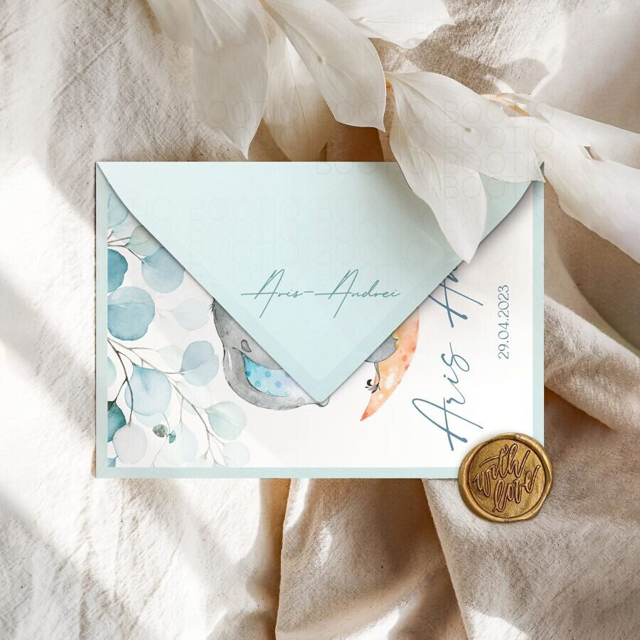 Invitatie de botez personalizata “Baby Elephant” – Copilaria este sinonim pentru fericire, iubire, joaca si culoare. Copilaria este cel mai frumos dar pe care viata ni-l ofera, asa ca merita sa fie pretuit la adevarata sa valoare.