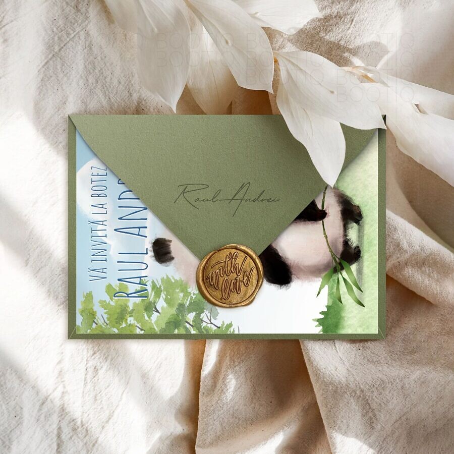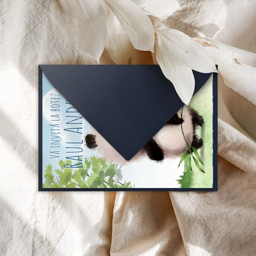 Invitatie de botez personalizata “Cute Panda” – Copilaria este sinonim pentru fericire, iubire, joaca si culoare. Copilaria este cel mai frumos dar pe care viata ni-l ofera, asa ca merita sa fie pretuit la adevarata sa valoare.