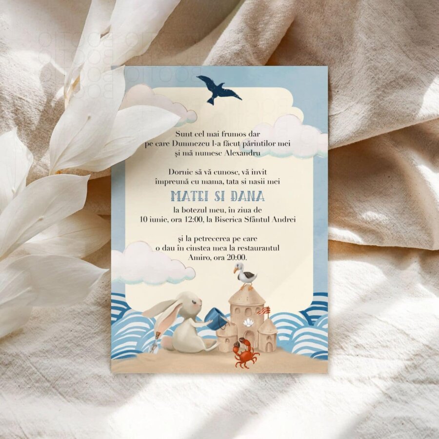 Invitatie de botez personalizata “Little Sailor” – Copilaria este sinonim pentru fericire, iubire, joaca si culoare. Copilaria este cel mai frumos dar pe care viata ni-l ofera, asa ca merita sa fie pretuit la adevarata sa valoare.