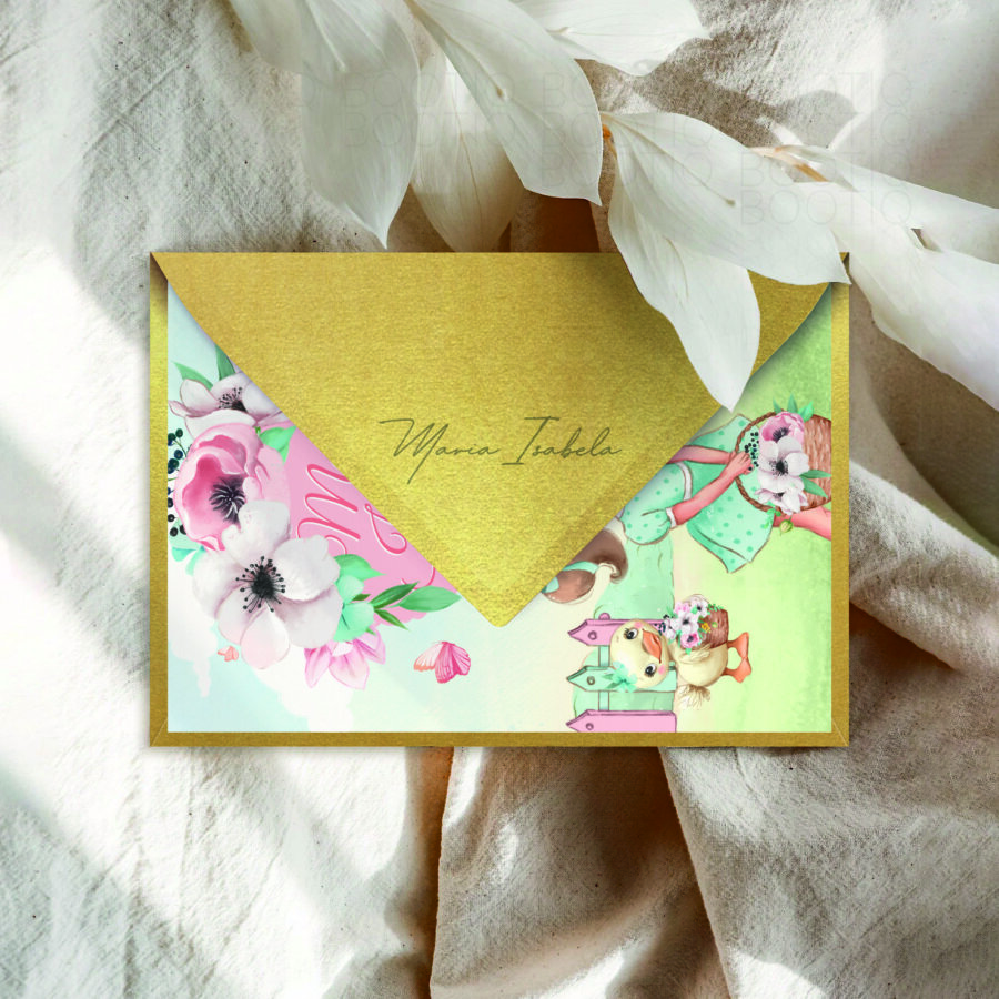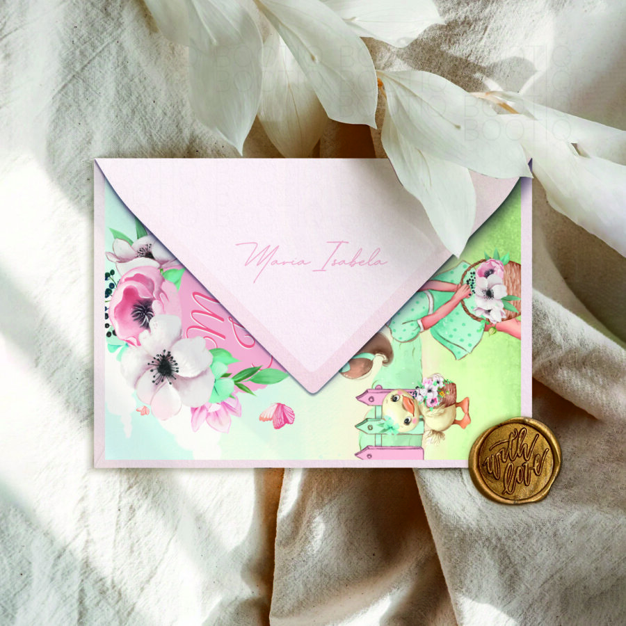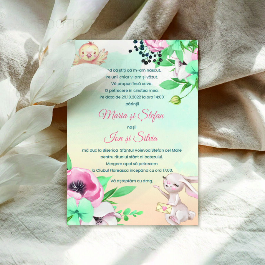 Invitatie de botez personalizata “Springtime Garden Brunette” – Copilaria este sinonim pentru fericire, iubire, joaca si culoare. Copilaria este cel mai frumos dar pe care viata ni-l ofera, asa ca merita sa fie pretuit la adevarata sa valoare.