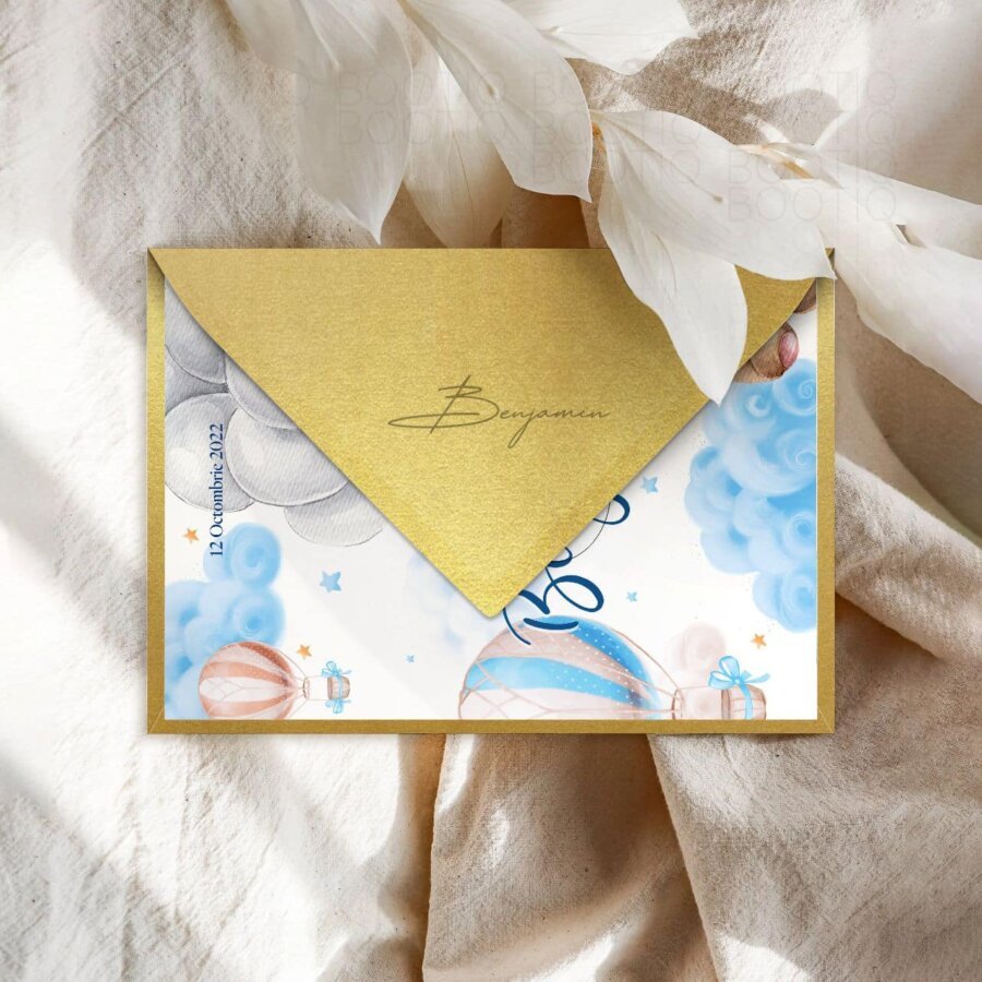 Ti-ai privit prichindelul in ochi din primele sale clipe si ai stiut din acel moment ca intreaga ta viata o vei da in schimbul unor avalanse de zambete pe fata copilului tau. Celebreaza aniversarea sau botezul celui mic in cel mai jucaus si colorat mod posibil. Invitatia pentru botez “Teddy in the Sky” a fost conceputa special de designerii nostri pentru ca tu sa retraiesti bucuria copilariei si pentru a intipari pe fetele celor apropiati un zambet incarcat de spiritul ludic al celei mai frumoase perioade din viata fiecaruia: copilaria.