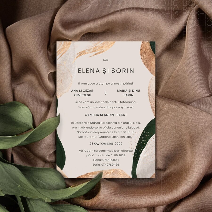 Emoţiile puternice pe care le trăim, nu de puţine ori au consecinţe ireparabile asupra întregii noastre existenţe. Emoţiile pot dura numai câteva clipe, dar amintirea lor durează o viaţă întreagă. Celebrează dragostea cu invitatia de nuntă “Abstract Wedding” cu un design special conceput de designerii noştri, pentru unul dintre cele mai importante momente din viaţa ta: căsătoria. Alege să îţi impresionezi apropiaţii cu acest design delicat şi de efect şi oferă-le emoţia unei amintiri care să dureze o viaţă întreagă.