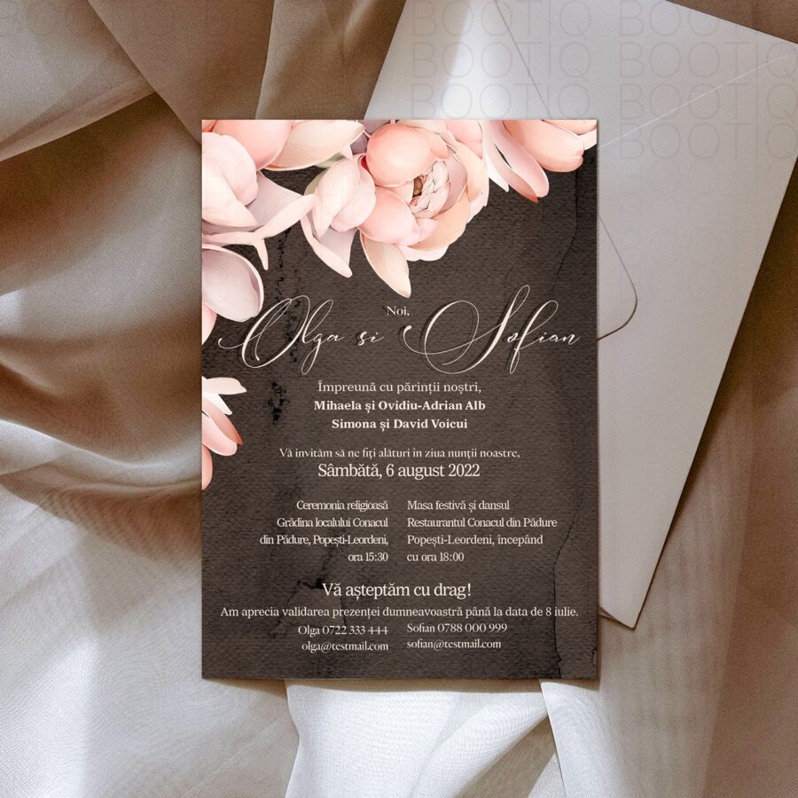 Invitatiile de nunta bootiq au doua dimensiuni.