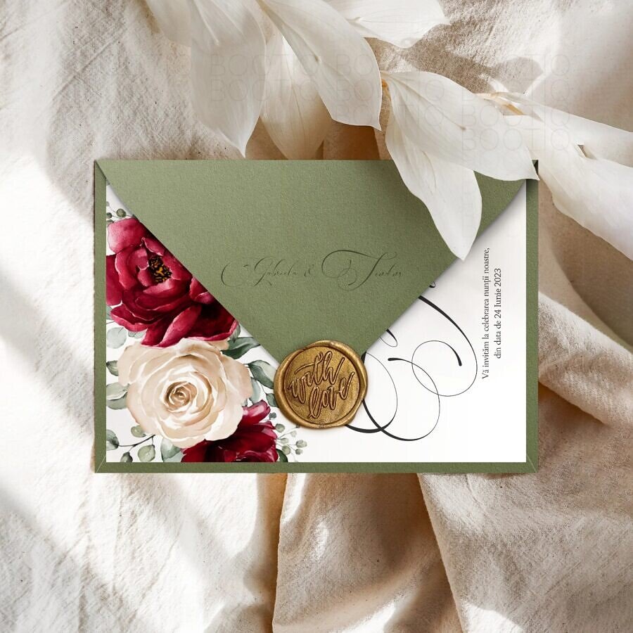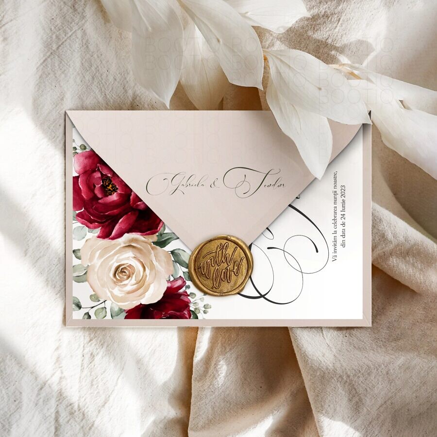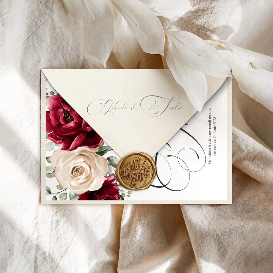 Emoţiile puternice pe care le trăim, nu de puţine ori au consecinţe ireparabile asupra întregii noastre existenţe. Emoţiile pot dura numai câteva clipe, dar amintirea lor durează o viaţă întreagă. Celebrează dragostea cu invitatia de nuntă “Royal Red” cu un design special conceput de designerii noştri, pentru unul dintre cele mai importante momente din viaţa ta: căsătoria. Alege să îţi impresionezi apropiaţii cu acest design delicat şi de efect şi oferă-le emoţia unei amintiri care să dureze o viaţă întreagă.