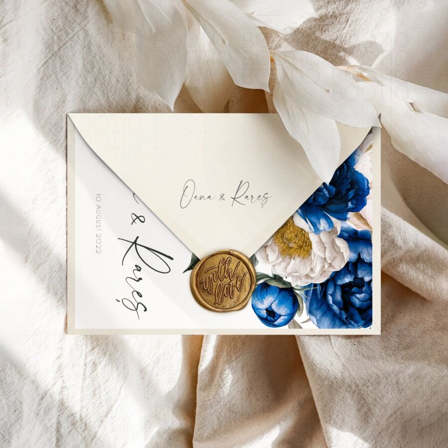 Emoţiile puternice pe care le trăim, nu de puţine ori au consecinţe ireparabile asupra întregii noastre existenţe. Emoţiile pot dura numai câteva clipe, dar amintirea lor durează o viaţă întreagă. Celebrează dragostea cu invitatia de nuntă “Royal Blue Flowers” cu un design special conceput de designerii noştri, pentru unul dintre cele mai importante momente din viaţa ta: căsătoria. Alege să îţi impresionezi apropiaţii cu acest design delicat şi de efect şi oferă-le emoţia unei amintiri care să dureze o viaţă întreagă.
