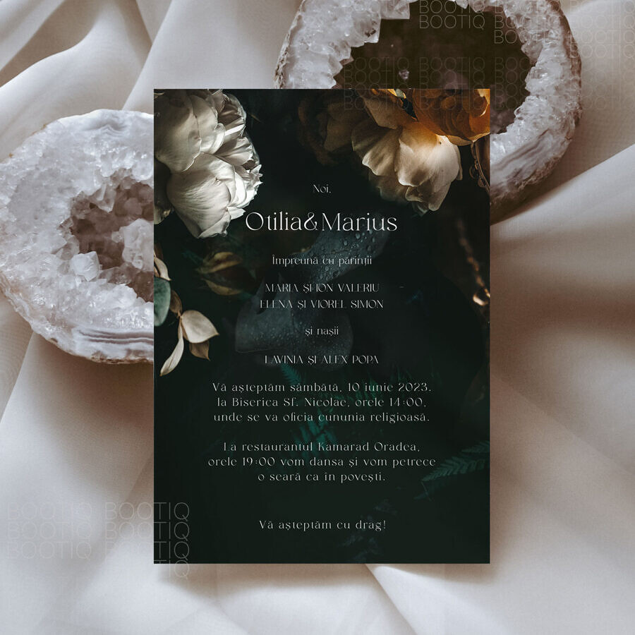 Invitatiile de nunta bootiq au doua dimensiuni.