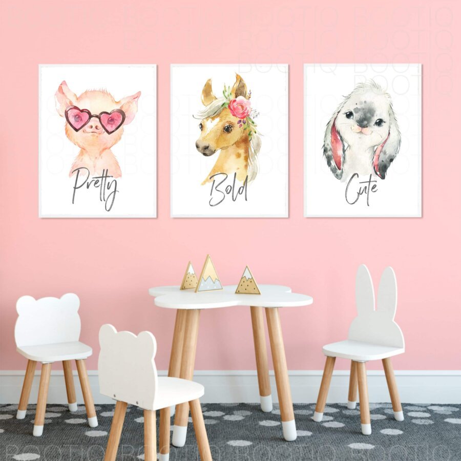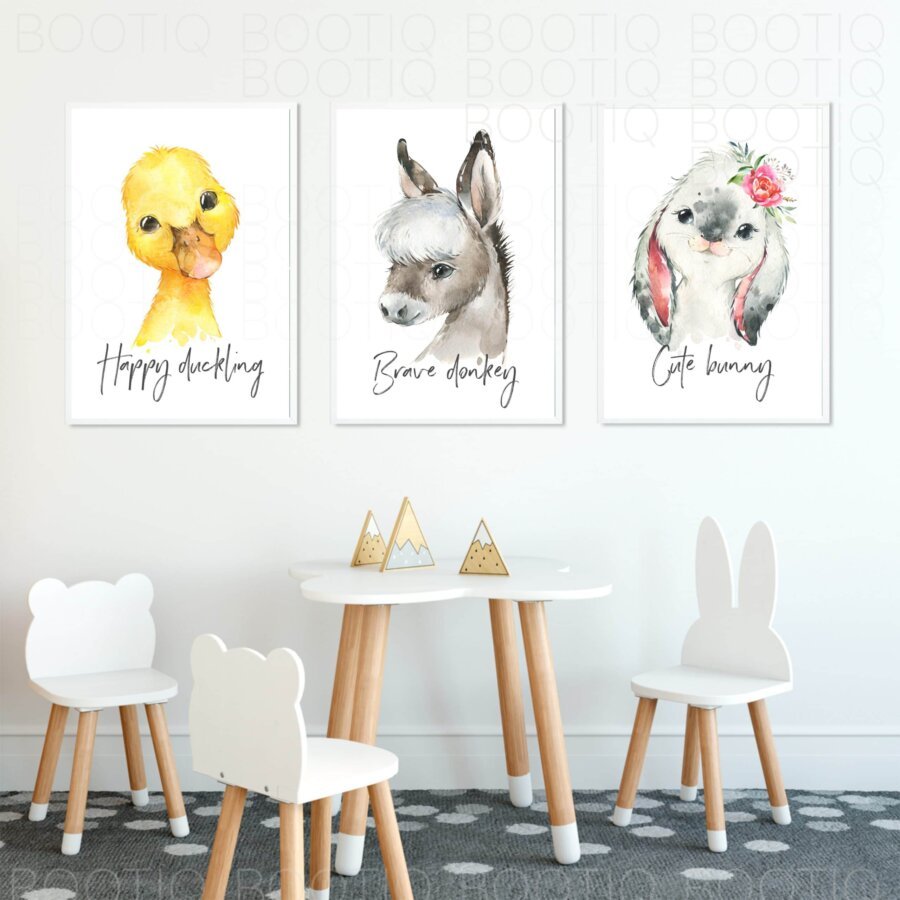 Set 3 Tablouri pentru camera copilului „Farm Animals” – magia copilariei in dormitorul prichindelului tau! š
