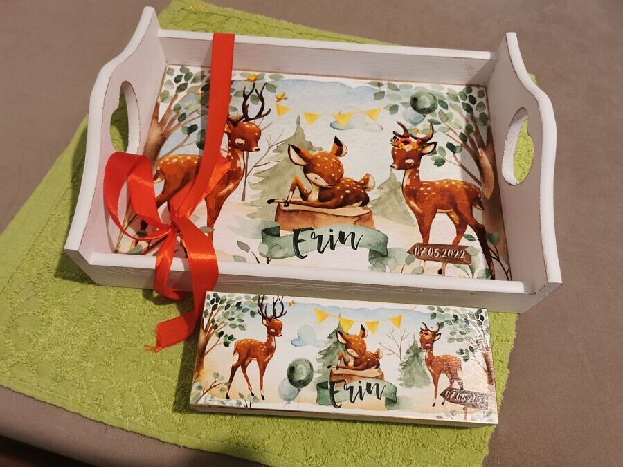 Setul este personalizat si antichizat manual, cu multa atentie, folosind tehnica decoupajului, cerneluri pigment pentru culori spectaculoase si lacuri de protectie pe baza de apa.