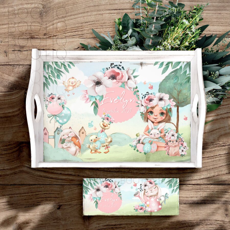 Setul este personalizat si antichizat manual, cu multa atentie, folosind tehnica decoupajului, cerneluri pigment pentru culori spectaculoase si lacuri de protectie pe baza de apa.