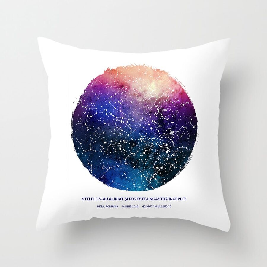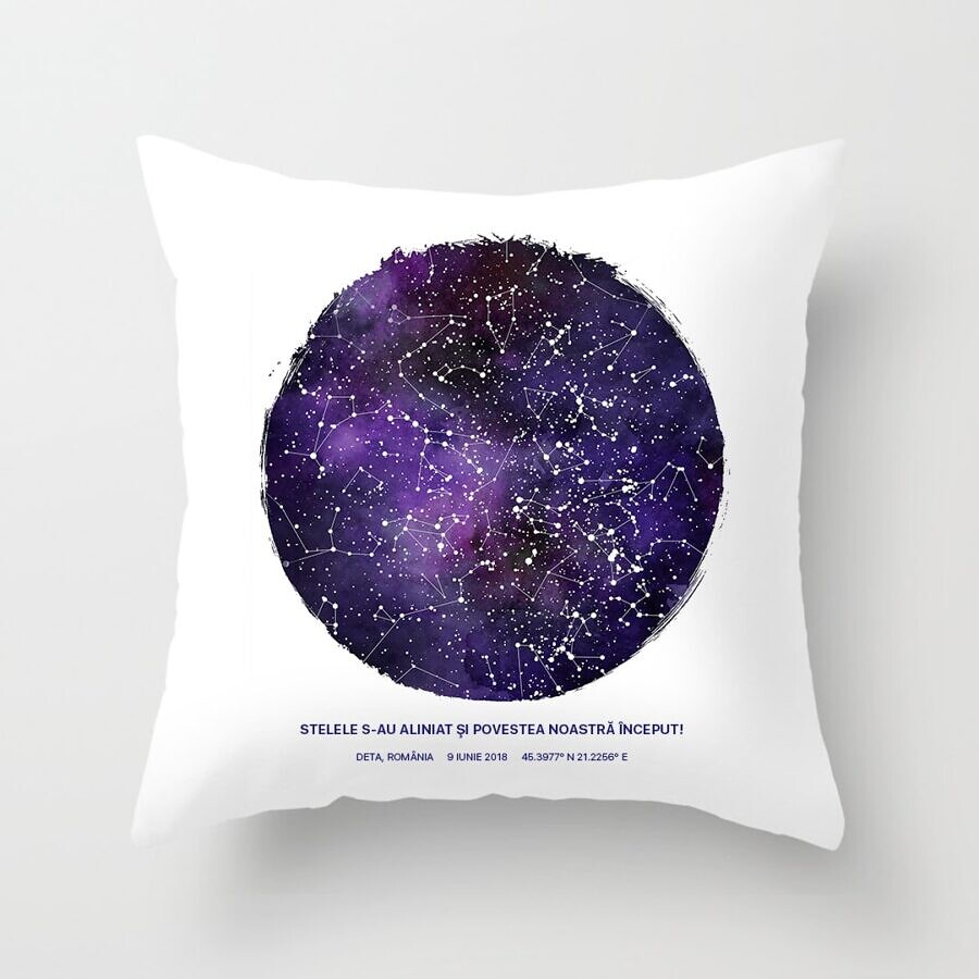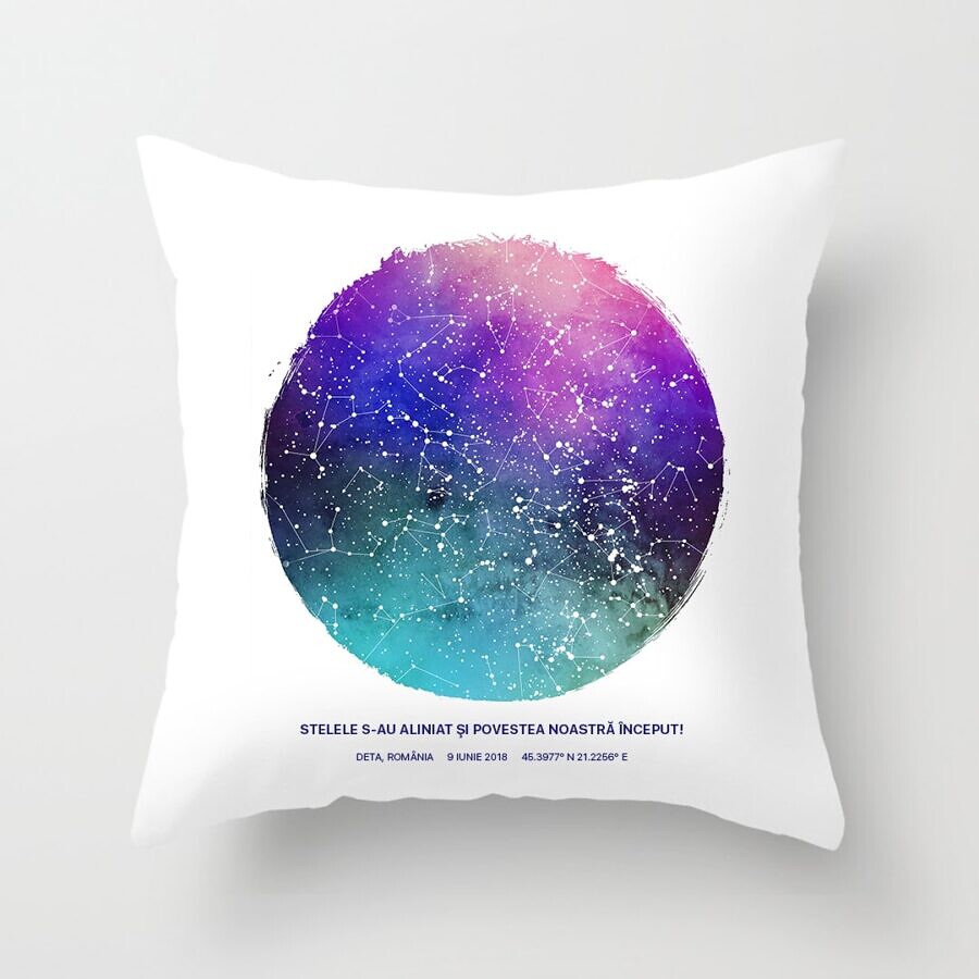 O perna personalizata cu harta stelelor de 50x50cm din noaptea în care inima ta a sărit o bătaie.