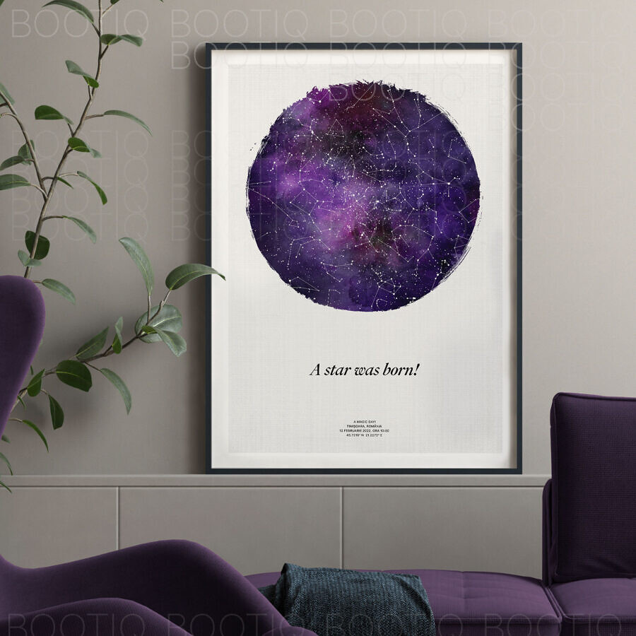 Creați o hartă a stelelor in stil watercolor. Folosim cele mai noi tehnlogii de imprimare astfel incat tabloul tau sa fie la cea mai înaltă calitate.