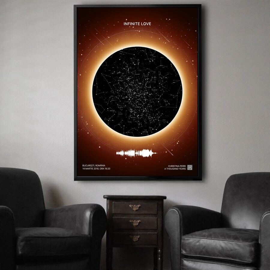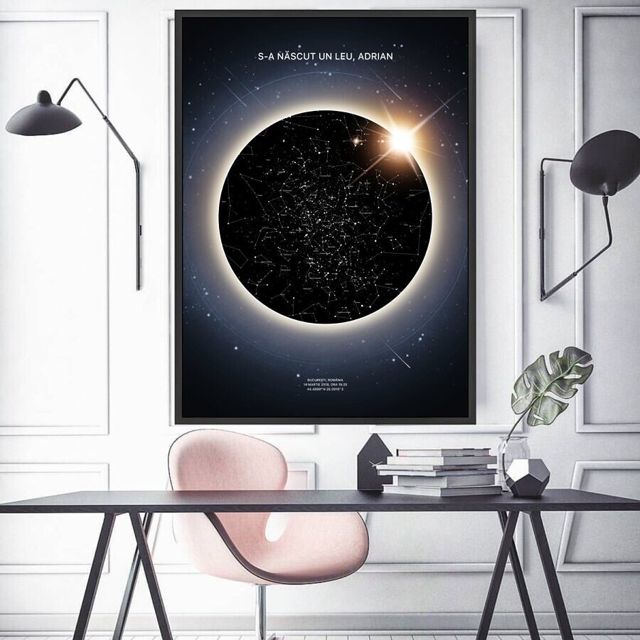 Tablou Personalizat Special: „The Star Sunrise” – harta stelelor din clipa in care inima ta a inceput sa bata mai puternic!