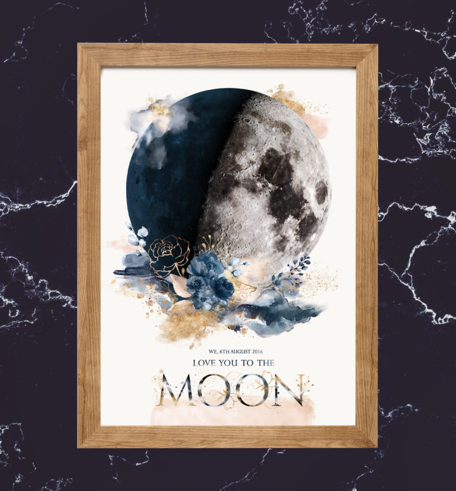Tabloul „Magic Moon” adanceste fiecare sentiment, oferindu-i un ecou rasunator in inimile voastre si amintindu-va ca fiecare moment este unic si irepetabil. Calatorind inapoi in timp, Luna va pastra amintirea vie a noptii cand, privind catre cerul magic, el ti-a furat primul sarut, sau atunci cand un suflet nou s-a nascut. Captureaza Luna magica intr-un tablou modern care sa-ti aminteasca mereu cum s-a simtit prima imbratisare, primul sarut sau primele lacrimi de bucurie cand ti-ai privit propria minune in ochi.