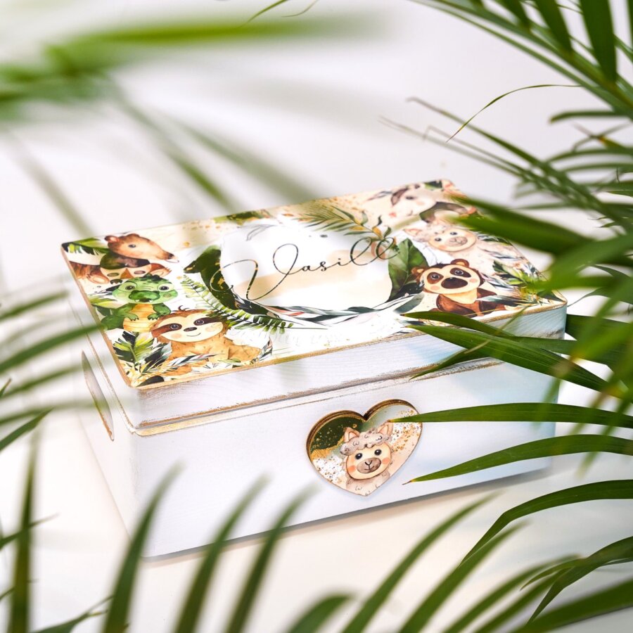 Tropical Cute Babies – Cutie personalizata din lemn pentru amintiri, botez sau aniversare