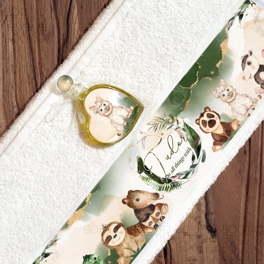 In cutie vei regasi suplimentar un prosop, o panza de mir, o sticluta de mir si o fasa de botez. Prosopul pentru botez este pufos si se personalizeaza prin imprimare digitala cu aceleasi ilustratii watercolor de pe cutie dar si cu numele micutului. Prosopul este realizat din bumbac organic premium si se spala la temperatura de 40C. Panza de mir este țesuta in stil traditional din fire premium unice de bumbac 100% organic. Panza are un tușeu confortabil si bland si este personalizata digital in acelasi stil. Conform traditiei si cerintelor bisericii, materialul nu se tiveste – astfel ca trebuie spalata cu grija pentru a nu se desira. Sticluta de mir este personalizata si are forma de inimioara si un capac de sticla cu inchidere ermetica. In sticluta incap ~60ml de ulei. Fasa de botez este realizata din bumbac 100%, are o textura de panza si un aspect usor dantelat. Este personalizata discret cu numele bebelusului scris cu auriu.