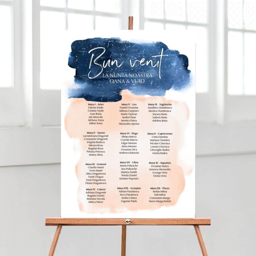 Watercolor Night Sky – Semn pentru Nunta personalizat simplu sau cu lista invitatilor