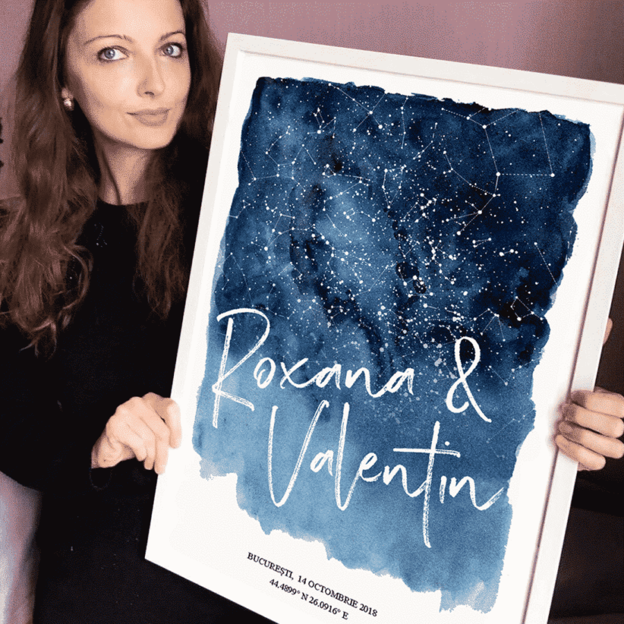 Tablou Personalizat Special: „The Magic Sky” – harta stelelor din clipa in care inima ta a inceput sa bata mai puternic!